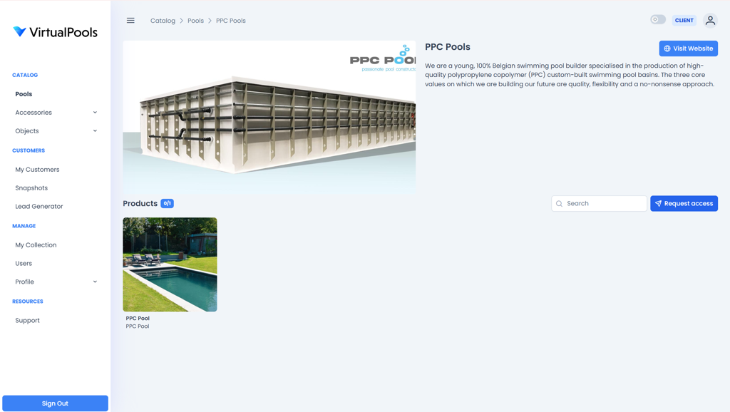 Some pool suppliers require approval before their products can be added to your configurator. This ensures that only authorized dealers can access and present their brand.